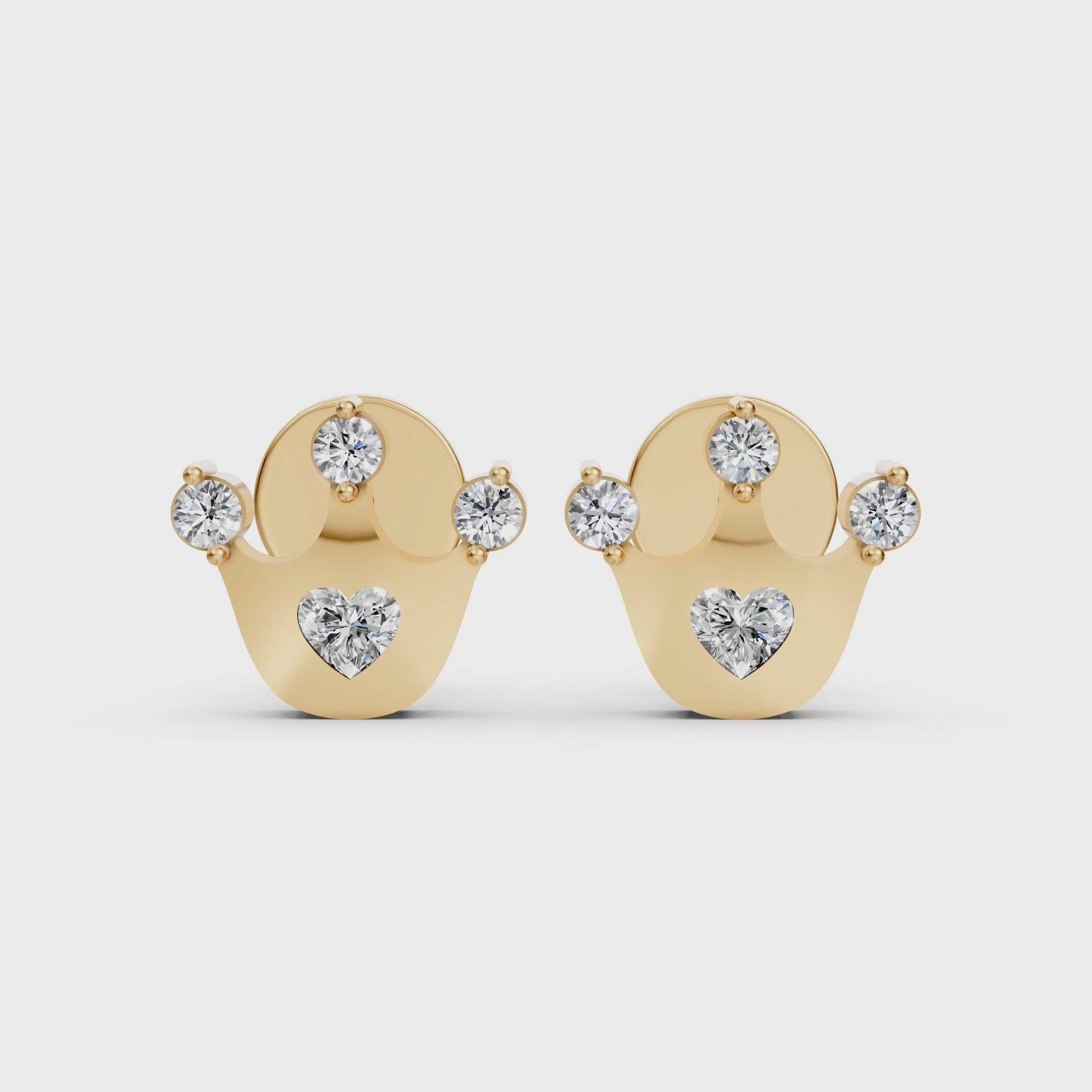 Regal and radiant, the Queen’s Crown Studs bring a touch of quiet royalty to your everyday glow. Crafted in 14K gold or 92.5 silver — available in yellow, white, or rose — each stud is shaped like a delicate crown set with brilliant lab-grown diamonds, including a heart-cut center stone that adds a soft, luminous warmth. Designed for those who carry a fire-bright spirit and a steady grace, these studs elevate both casual style and evening elegance. A subtle tribute to every woman who rules her own court — timeless, powerful, and beautifully aglow.
